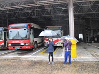 小学部の高学年、雨の日でしたが、午後の晴れ間を見つけて、門前商店街に散歩に行きました。すると、門前バスターミナルで大きなバスを見つけて、「うわあー」と寄ると、「写真撮ってもいいよ」とバスの運転手さん。記念写真をパチリ!