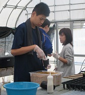 10月24日(水)高等部生徒は輪島市の垣地さんの指導を受けながら、ゆきわりそうの植え替えを行いました。教わった通りに大切に一つ一つポットに移しました。今回は昨年よりもたくさん植え替えることができました。どれもきれいな花を咲かせてほしいです。水やりも頑張ります。