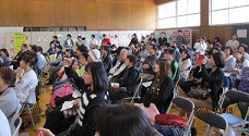 職場実習や就労、日中サービス・学童サービスなどについて、育友会の皆さんもいろいろ質問し、見学しました。
