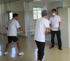 7月27日(金)学校は夏休みですが、職員で不審者対応訓練を行いました。輪島警察署のお巡りさんが不審者役となり、突然学校に来たという設定で行いました。子どもたちの安全を守るためにはどうすれば最善か?いろいろなケースを教わりました。刺股の使い方なども実際に学びました。あってはならないことですが、いつも危機感をもって対応したいものです。