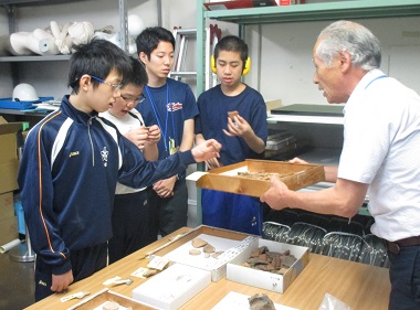 「門前の昔から伝わっているものは?」「門前の歴史ってどんなだろう?」という学習で、高等部生徒はみんなで門前支所2階「門前交流センター」へ出かけました。門前公民館の谷内館長さんから、「あまめはぎ」のことや「文化財」「遺跡出土品」について、たくさんお話をしていただきました。実際に出土された昔の土器の手触りや鋳造鉄の重さも体験しました。郷土文化の奥深さを少し味わうことができました。
