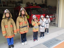 11月9日(水)小学部の児童5名は、穴水消防署見学にでかけました。消防署員の方から説明を聞いた後、消防服を着せてもらいました。すごくかっこよくてみんなとてもうれしそうでした。その後、消防車にものせてもらいました。消防署の施設も見学させていただき、仮眠室やトレーニングルームも見せてもらいました。質問にもたいへん丁寧に答えていただき、たいへん有意義で貴重な体験学習となりました。穴水消防署のみなさん本当にありがとうございました。