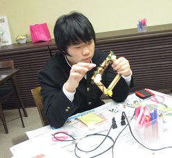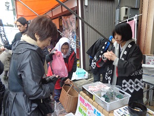 12月10日(土)に輪島朝市通りで輪島高等学校の生徒と一緒に販売実習を行いました。高等部2名の生徒が参加し、クラフトバックや踏み台、ミニツリーなど自分たちで制作した製品を販売しました。雪が降りとても寒い中の販売実習となりましたが、生徒たちは元気よく観光客や地元の人たちに製品を販売していました。