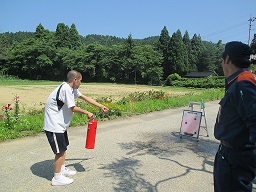 6月25日(木)輪島消防署門前分署の職員の方にきていただき避難訓練をしました。火災を想定した訓練でしたが、児童生徒は落ち着いて行動し、全員避難しました。その後、消防士の方に消火器の使い方を教わり消火訓練も行いました。