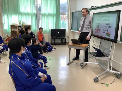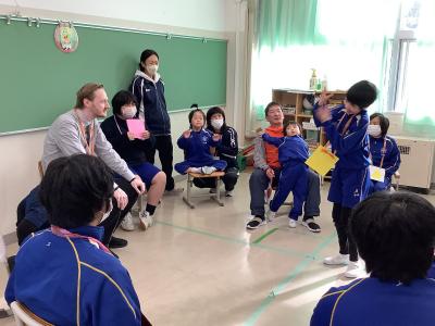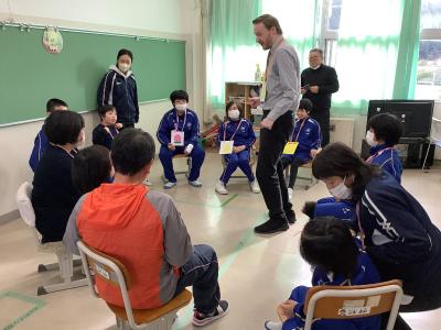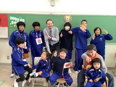12月10日、小学部と中学部でALT(外国人講師)との交流学習がありました。はじめは緊張していましたが、練習していた ”I‘m ~.” や ”I like ~.” など、英語での自己紹介を上手にすることができました。自分たちで考えた”Do you like cats?” や ”What food do you like?”などの質問コーナーやゲームコーナーでフルーツバスケットをして楽しく交流することができました。