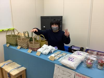 作業学習の時間に作ったクラフトバンドのミニかごや、高等部の製品を販売しました。