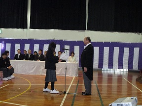 2015年7月30日 09時16分4月10日(金)全校対面式が開かれました。昨日入学したばかりの8名の新入生も少し緊張気味でしたが、みんなの前で自己紹介をすることができました。