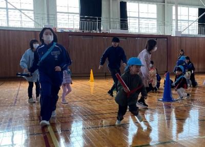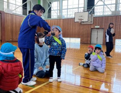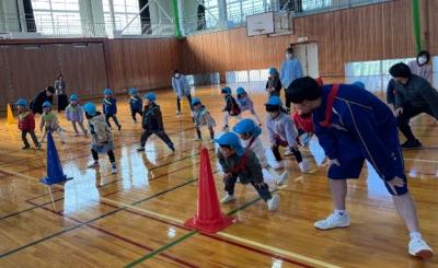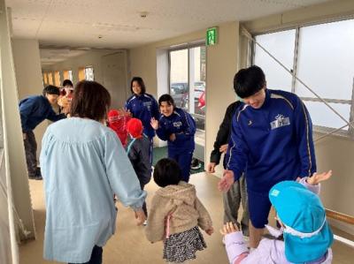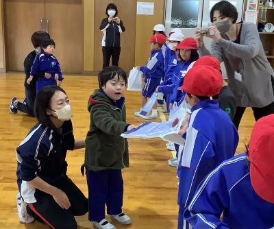 20名と多くの園児を前に、はじめは緊張している様子の生徒たちでしたが、会が進むにつれ自然と笑顔や優しい声掛けが増え、『なかよくなろう!うんどうかい』は大成功◎ 最後はハイタッチでお見送りをしました♪