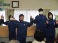 ダンスやバルーンの演技を披露し、利用者の方と一緒に「あんたがたどこさ」の手遊び歌をしました。利用者の方から、「上手だね。」と褒めていただきました。