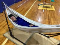 移動式あそび場全国ネットワークからあそび場の提供がありました。東京と福島からひーろーさんとやっこさんが来てくれました。玩具や遊具を見て「お祭りみたい!」や「やったー!」と大喜びの子どもたち。色々なあそび場を回ったり、1つの場でじっくり遊んだり、それぞれの遊び方で楽しむことができました。小学部と中学部との関わりも見られ素敵な時間を過ごすことができました。