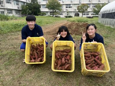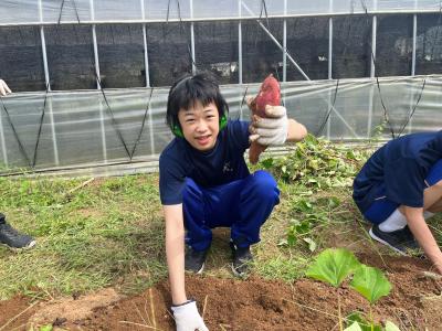 5月に植えた苗が太く長く伸び、畑からはみ出るほど成長しました。9月18日(水)に中学部高等部合同で、大きくなったさつまいもを収穫しました!子どもたちは土をよけるのに苦戦しつつも、さつまいもが傷ついたり折れたりしないように一生懸命両手で土をかき分けていました。掘っても掘ってもゴロゴロ出てくるさつまいも。「ここにもあった!」「これでっかいぞ!」「大量だ!」と大喜びの子どもたちでした。