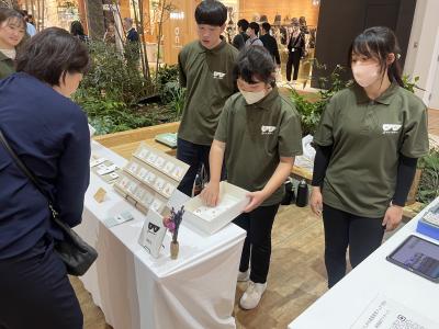 10月26日(土)、イオンモール白山でいしかわ産業教育フェア2024が開催されました。輪島分校の高等部から3名の生徒が参加し、作業製品の販売を行いました。はじめは緊張している様子の子どもたちでしたが、お客様の対応をするうちに自然と声や笑顔が出てきて、生き生きと接客をする姿が見られました!売り上げも目標金額に達し、「頑張って作った商品がたくさん売れてよかった」「違う色の商品も作ってみよう」と、みんな嬉しそうに話していました。