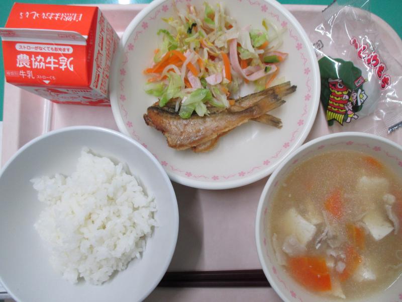 8日(月)ごはん ハタハタから揚げ からしあえ 豚汁 かしわもち