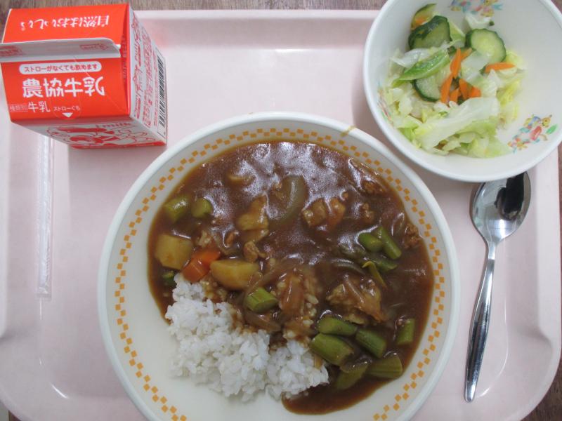 10日(水)アスパラガスのカレー キャベツのサラダ 牛乳