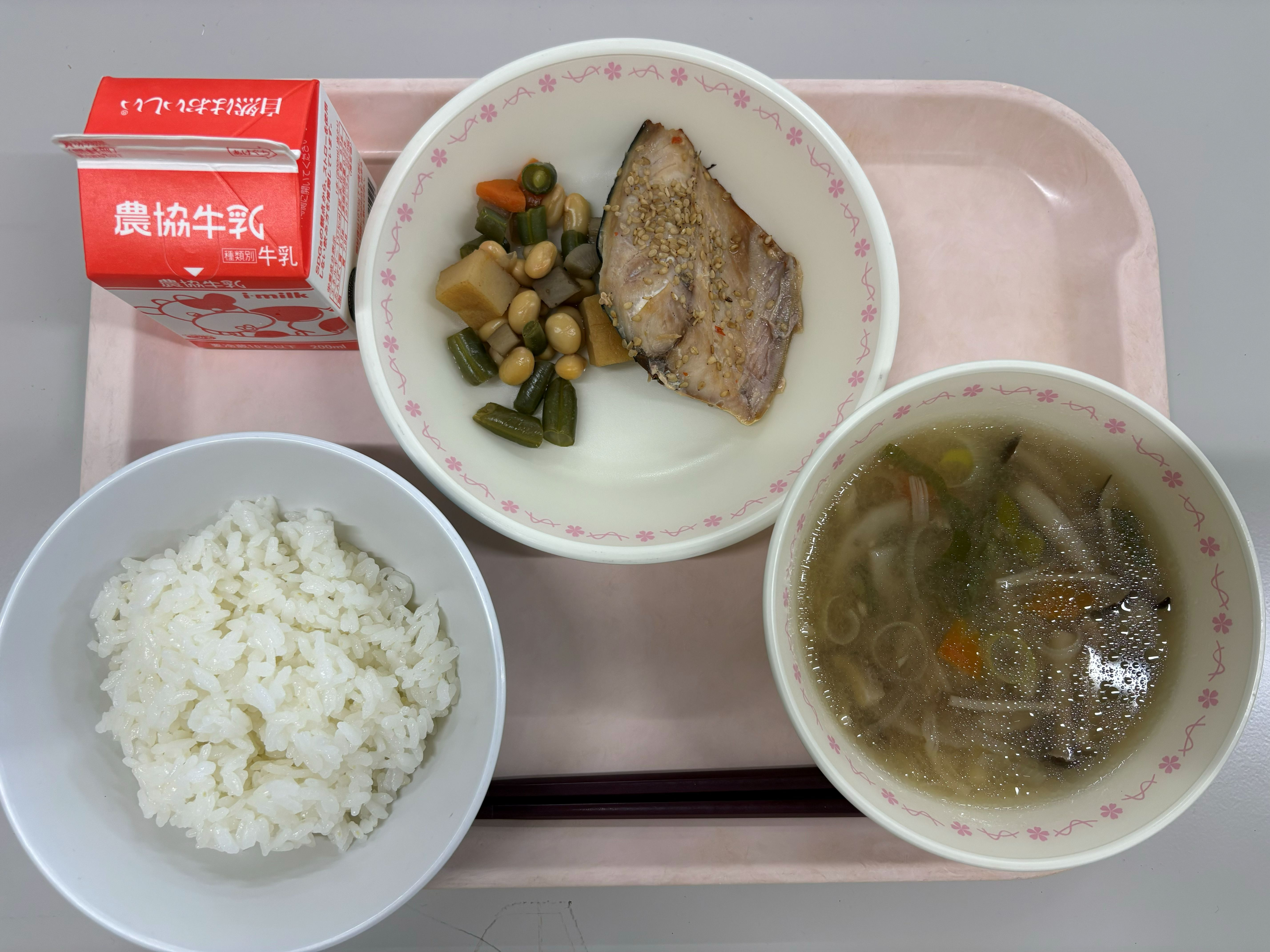 1月16日(金) ごはん さばのスタミナ焼き 五目煮豆 みぞれスープ 牛乳