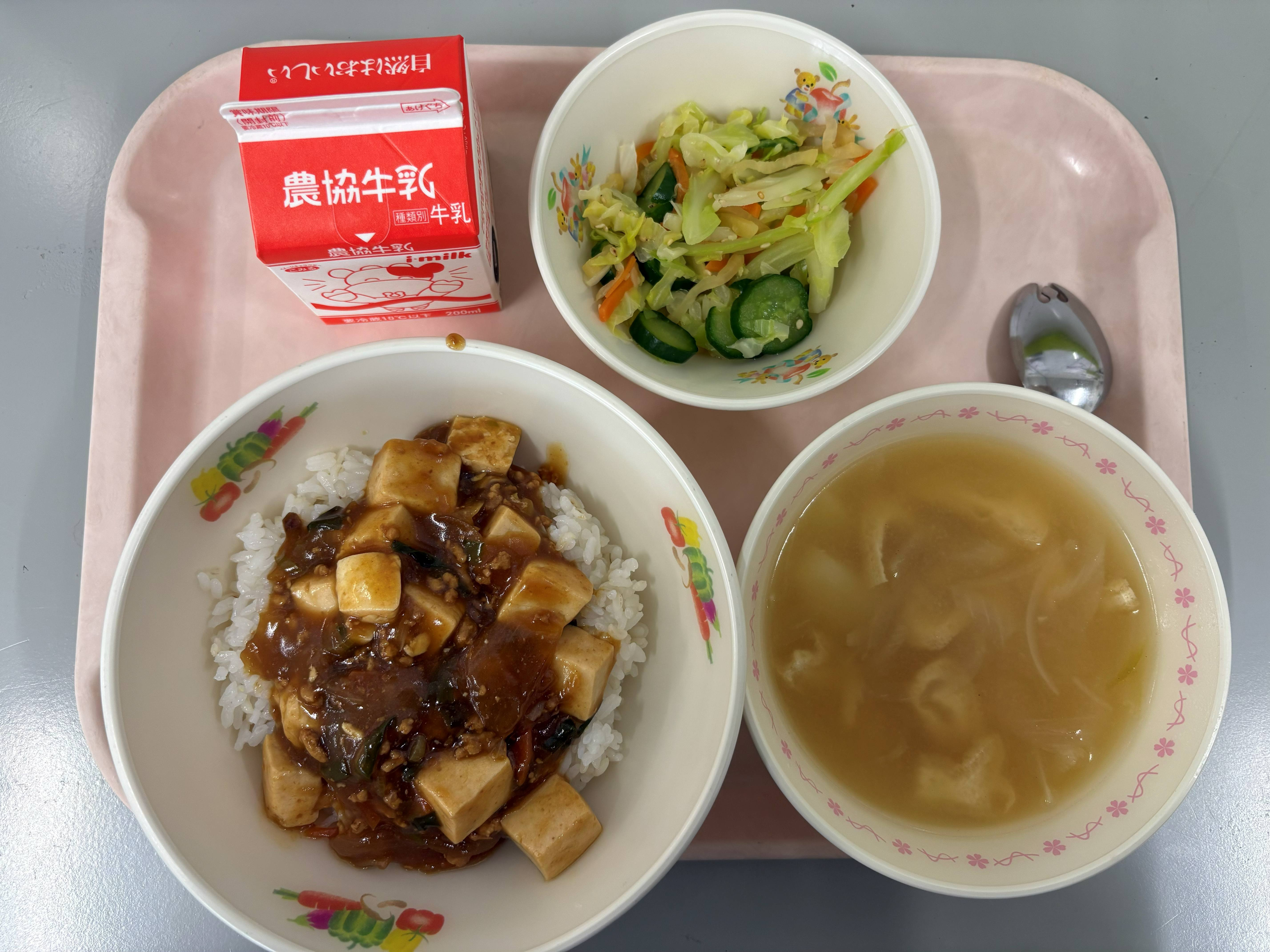 1月19日(月) マーボ―丼 たくあん和え みそ汁 牛乳