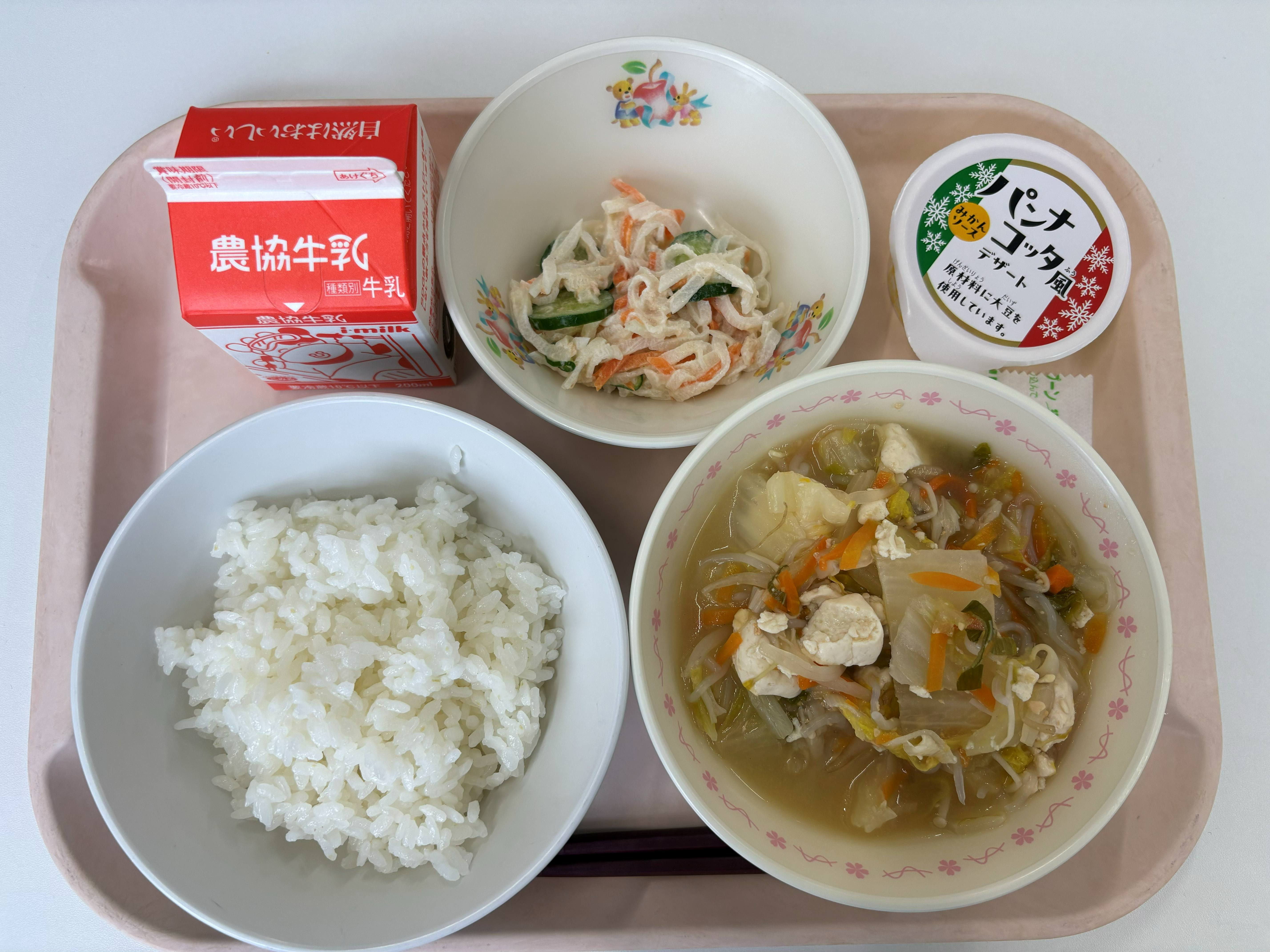 1月21日(水) ごはん とり野菜 大根ツナサラダ パンナコッタ風デザート 牛乳