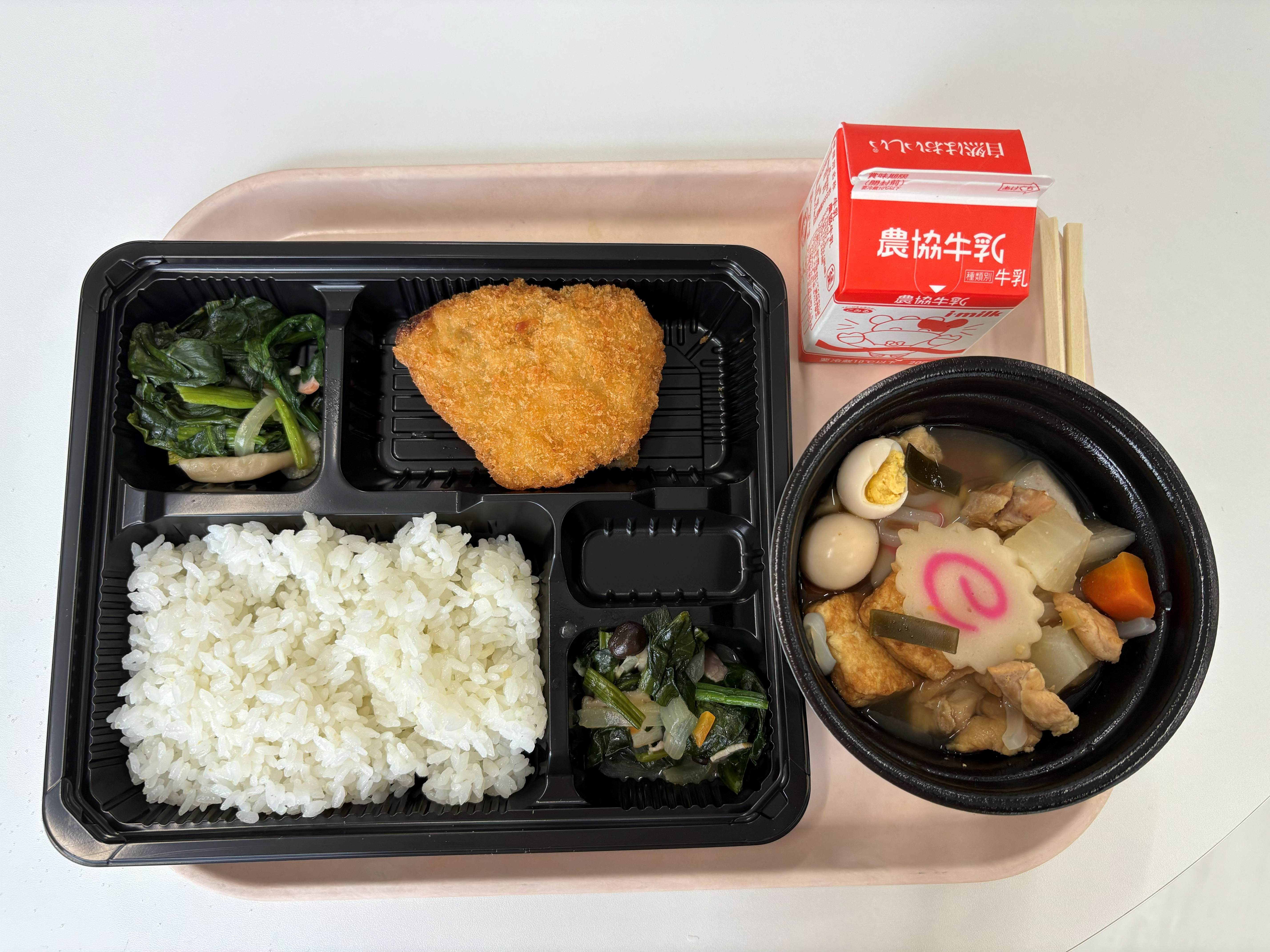 1月27日(火) 石川給食 ごはん ぶりのみそ漬けフライ ほうれんそうのソテー 金沢おでん 牛乳