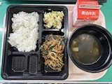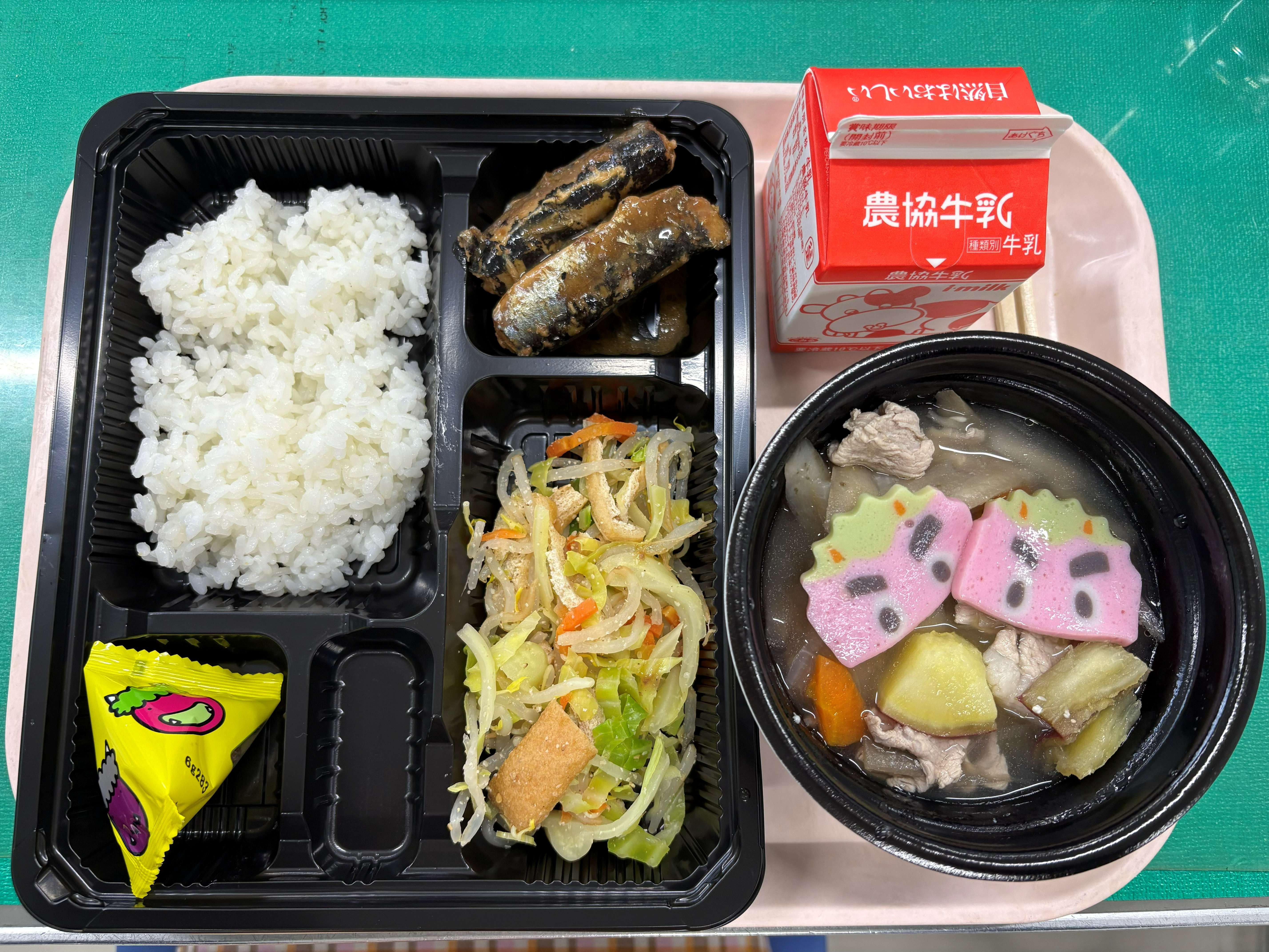 2月3日(火) 節分給食 ごはん いわしのみそ煮 油揚げのごま酢和え めった汁 黒糖福豆 牛乳