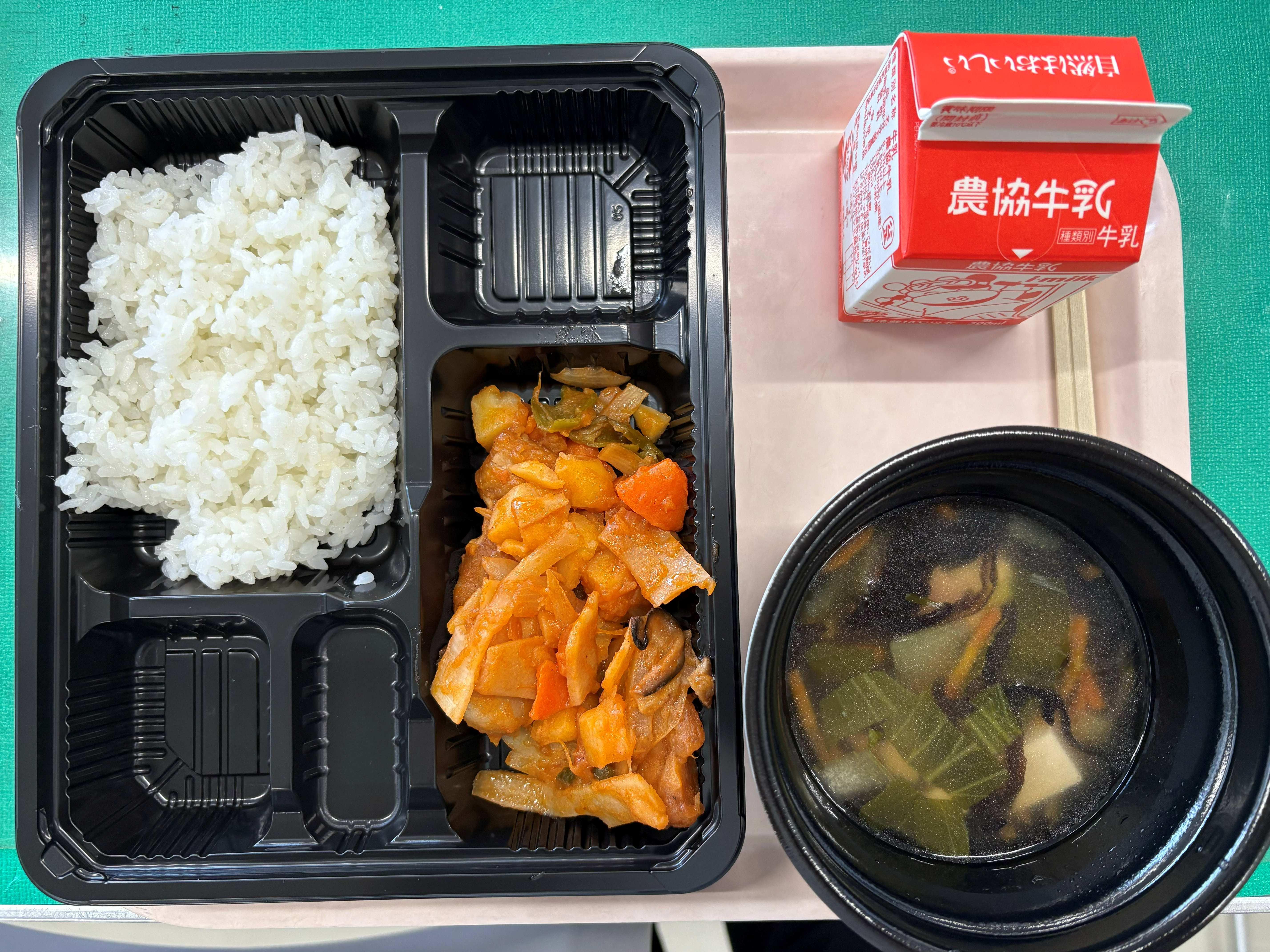 2月5日(木) ごはん 酢豚 豆腐とチンゲンサイのスープ 牛乳