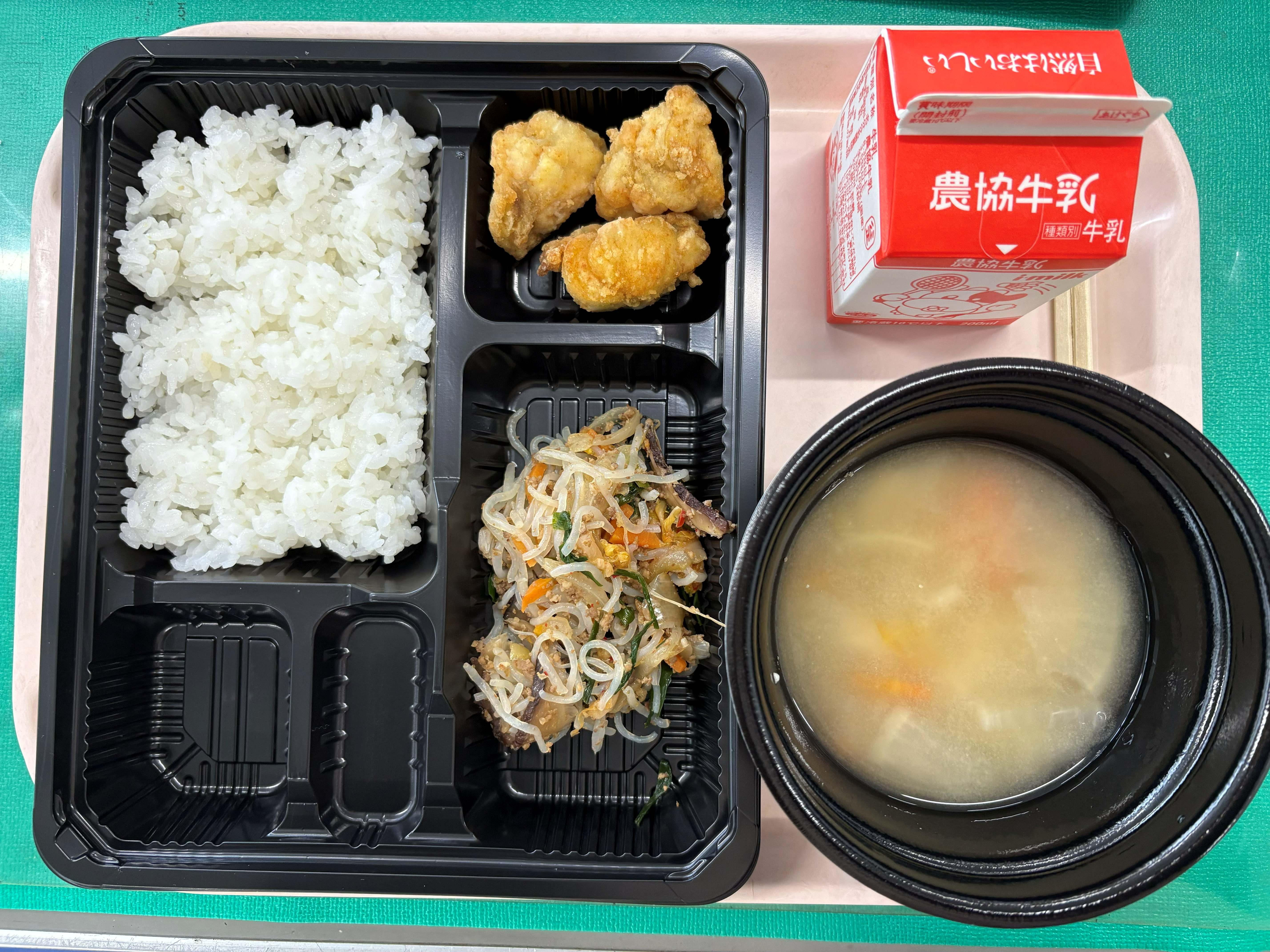 2月9日(月) 輪島ふぐ給食 ごはん 輪島ふぐのからあげ しらたきのチャプチェ いものこ汁 牛乳