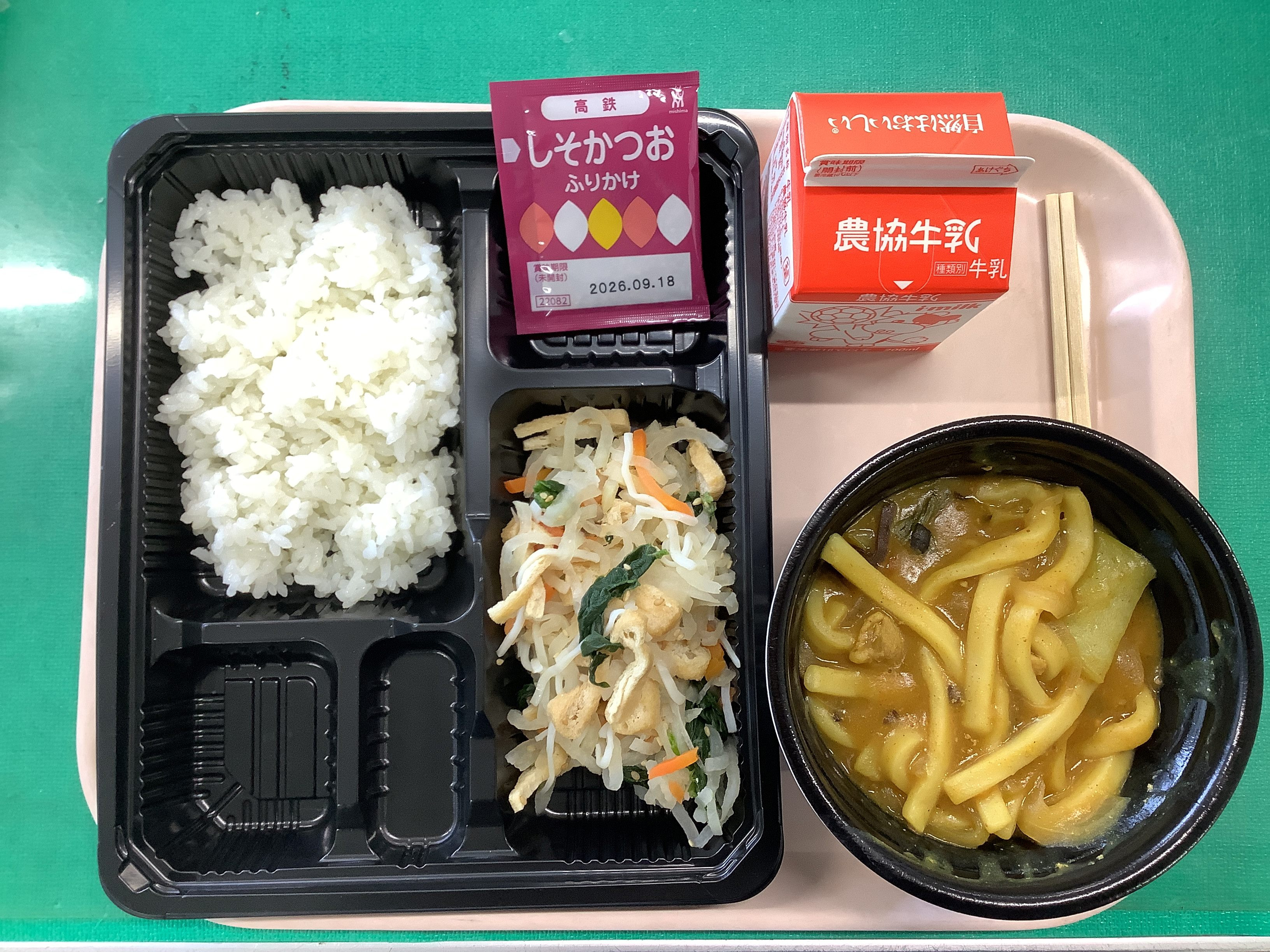 2月12日(木) ごはん カレーうどん 五目なます しそかつおふりかけ 牛乳