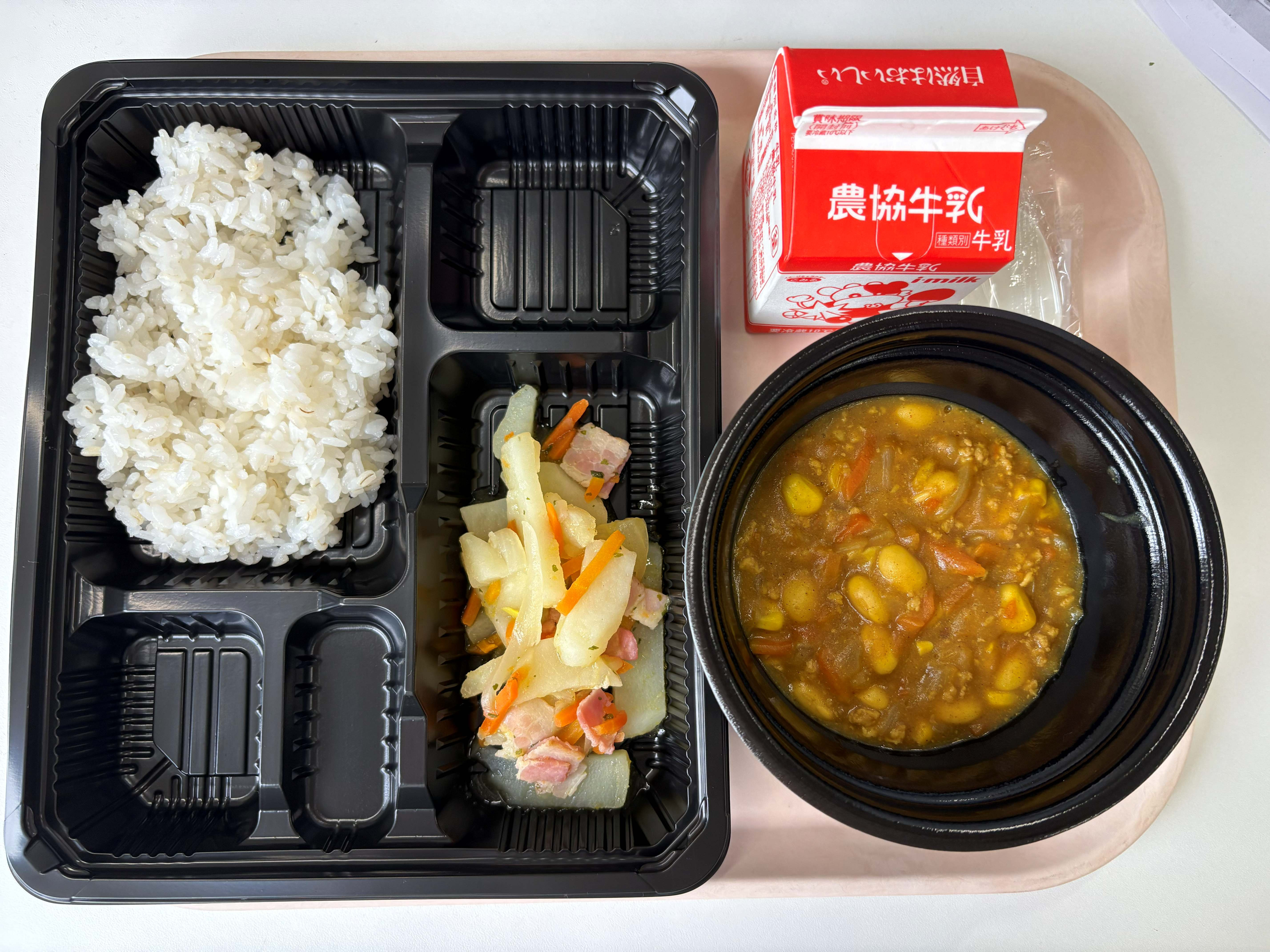 2月27日(金) 大豆のキーマカレー ジャーマンポテト 牛乳