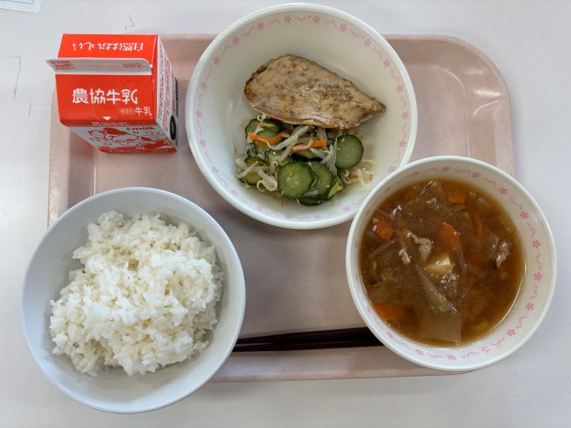 7月3日(木) ごはん さかなのスタミナ焼き きゅうりのピリ辛和え 豚汁 牛乳
