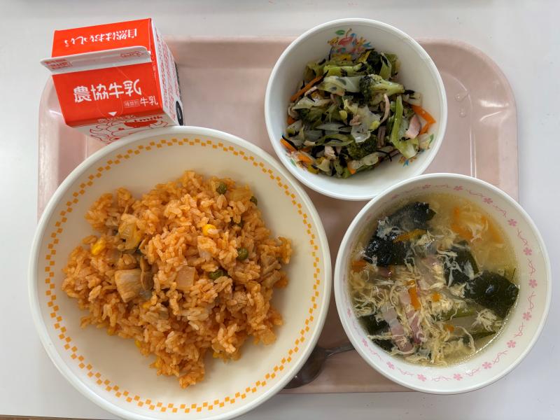 7月9日(水) チキンライス ひじきのサラダ たまごスープ 牛乳