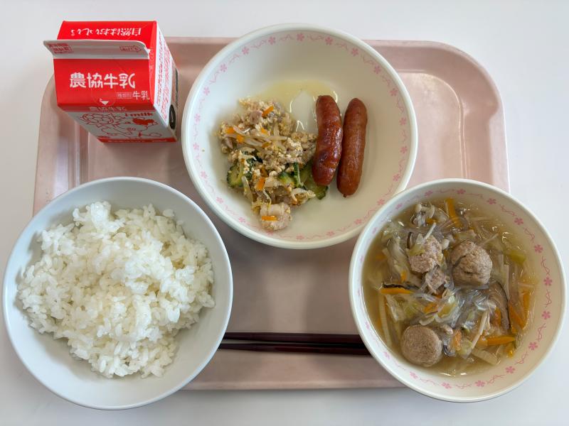 7月11日(金) ごはん ウインナー ゴーヤチャンプルー 肉団子のはるさめスープ 牛乳