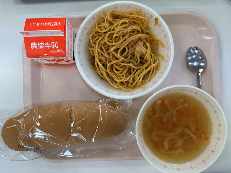 7月16日(水) コッペパン ミートソーススパゲッティ コンソメスープ 牛乳