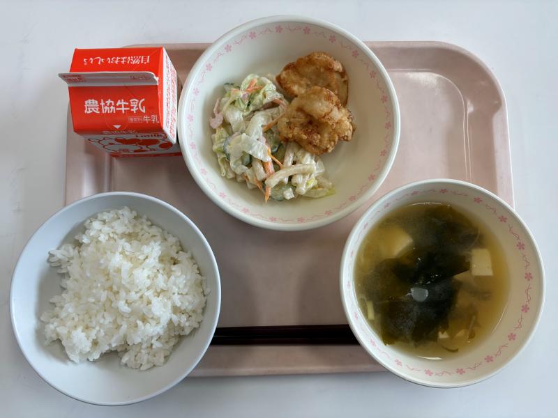 7月17日(木) ごはん 鶏のからあげ マカロニサラダ みそ汁 牛乳