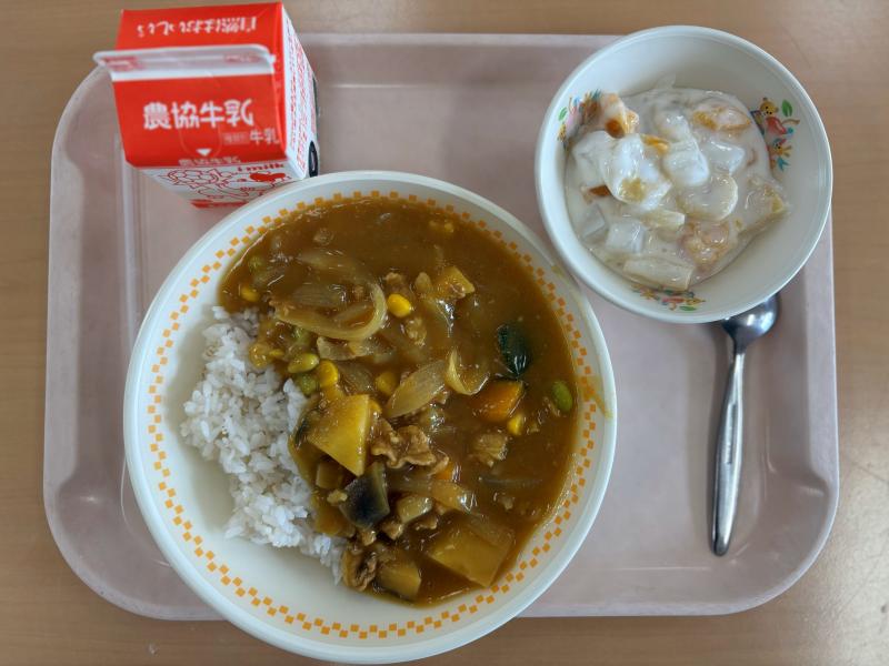 7月18日(金) 夏野菜カレー フルーツヨーグルト 牛乳