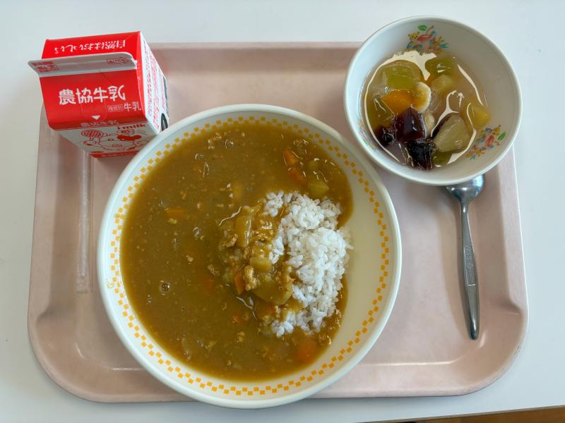 9月1日(月) 大豆のキーマカレー フルーツゼリーポンチ 牛乳