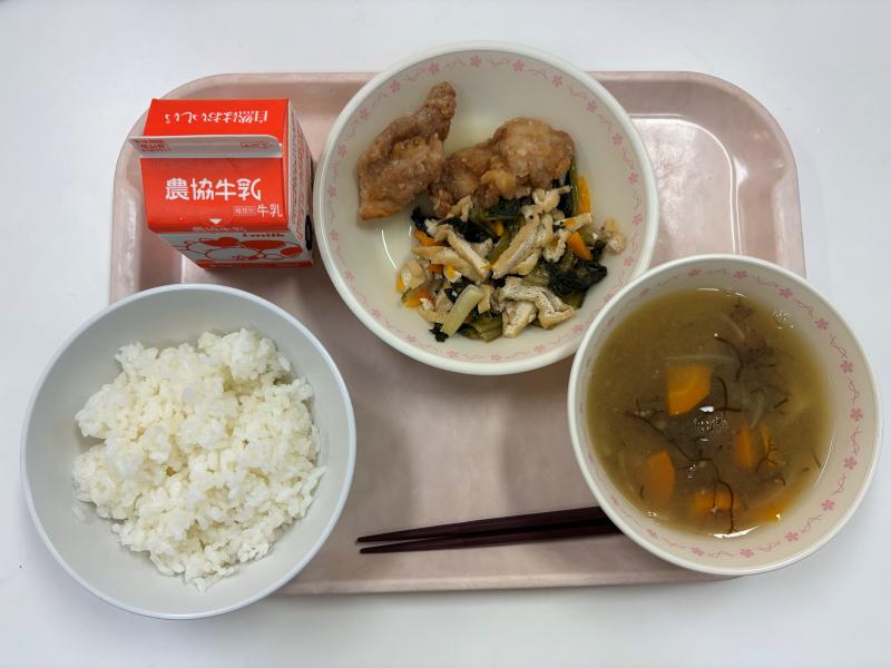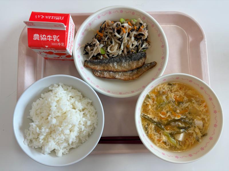 9月4日(木) ごはん いわしの竜田揚げ ひじきときりぼしのツナ和え 茎わかめとキムチのスープ 牛乳