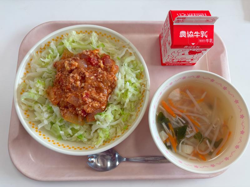 9月5日(金) タコライス ゆでキャベツ 水ぎょうざスープ 牛乳