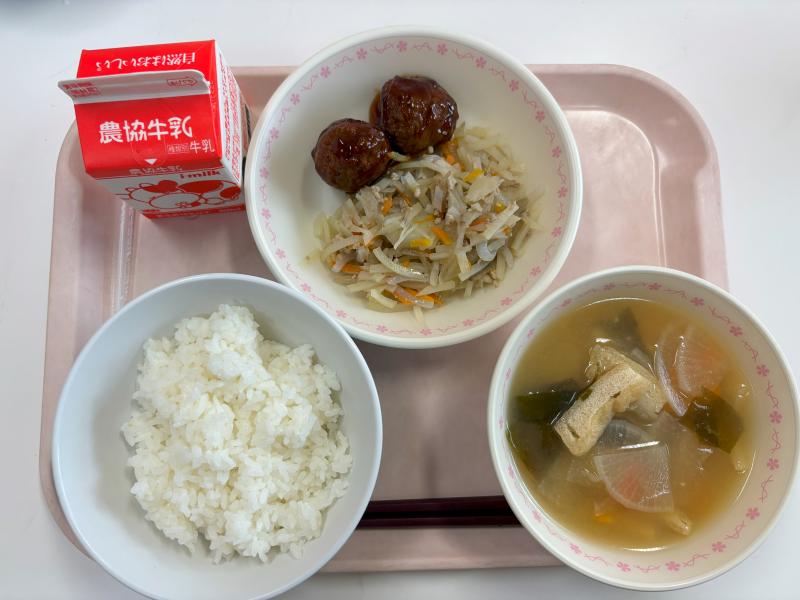 9月8日(月) ごはん 肉団子 じゃがいものきんぴら みそ汁 牛乳