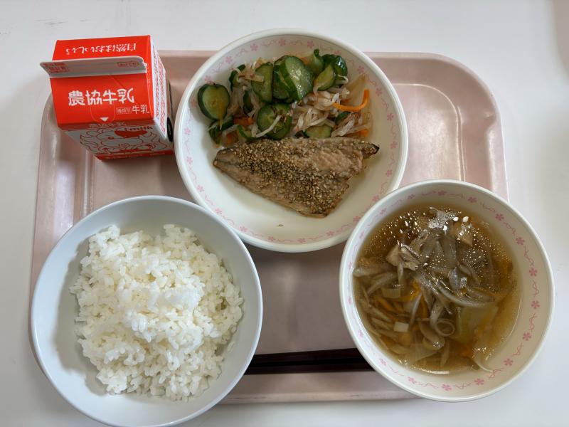 9月11日(木) ごはん さかなのごま照り焼き おかか和え 鶏とごぼうのすまし汁 牛乳