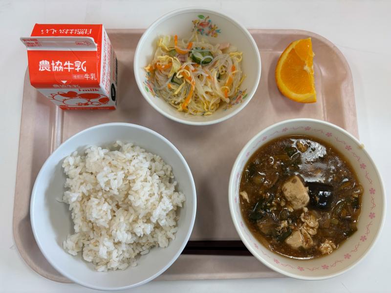 9月12日(金) ごはん マーボ―なす バンサンスー オレンジ 牛乳