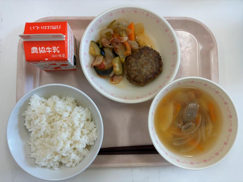 9月24日(水) ごはん ハンバーグ ラタトゥユ 糀のスープ 牛乳