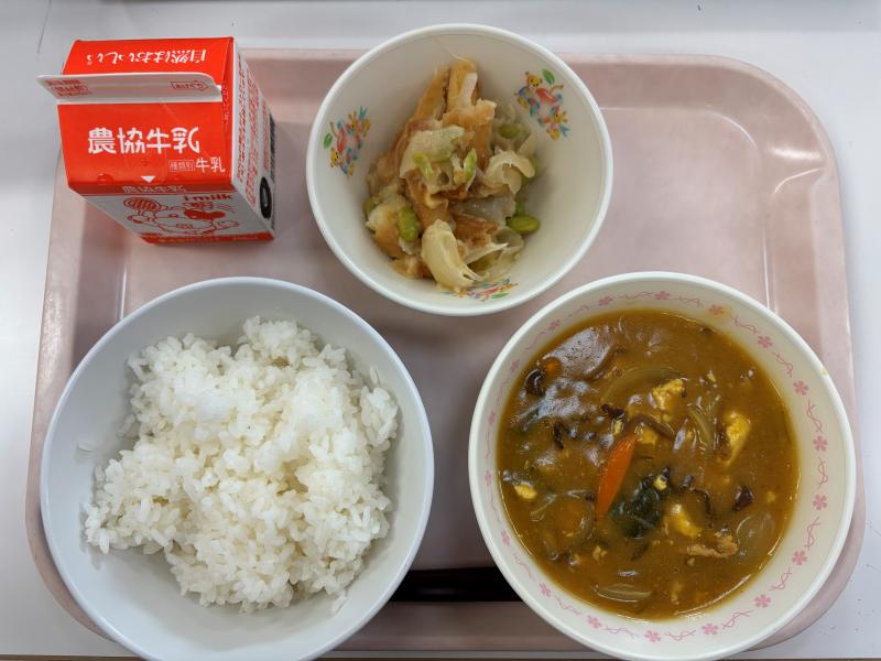 9月29日(月) ごはん 豆腐のカレー煮 枝豆チーズポテト 牛乳