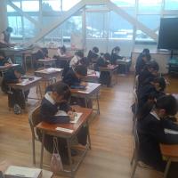 同じ学年の県外の友達ができ、みんな笑顔で質問したり答えたりしながら交流を深めることができました。