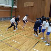 体育委員会主催で、全学年の大縄跳び8の字大会を行いました。