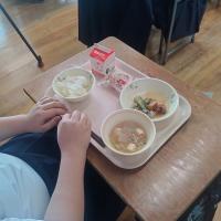 1月27日(月)の給食に特別栽培米の提供がありました。つやつやで甘いご飯をみんなでおいしくいただきました。5年生の教室では、特別栽培米を提供してくださった、たけもと農場の竹本様より、特別栽培米の特長についてお話を伺いました。無農薬で、有機肥料を使った特別栽培米のお話は、現在総合的な学習の時間に進めている国造ゆずの学習やトキの学習にもつながる点がたくさんありました。お話を伺った後は、ご飯を追加してもらう列が長くなるほどの人気でした。貴重な機会をいただき、ありがとうございました。