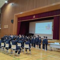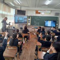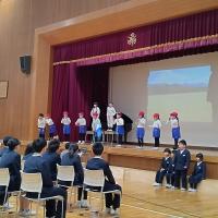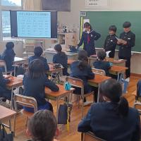 4月に6年生の子どもたちが入学する辰口中学校の生徒さん3名が、辰口中学校の紹介をしに来てくれました。「辰中へ行こう」と題し、中学校での学習や学校行事、部活動など自分たちで制作した動画も交えて詳しく説明してくれました。来てくれた中学2年生は、本校の卒業生です。6年生の子どもたちは、立派に説明してくれる中学生を見ながら、来る中学校生活に思いをはせている様子でした。来校してくれた辰口中学校の皆さん、ありがとうございました。そして、4月からよろしくお願いします。