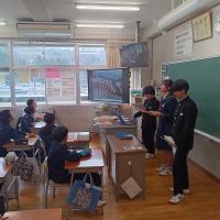 4年生が交流した日は雪がしんしんと降っていたので、クロームブックで運動場の様子を映し出すと、高倉小学校の皆さんから歓声が上がりました。5年生が交流した時には、大阪で今年開かれる万博のことについて教えてもらい、行ってみたいと手を挙げている子どもたちがたくさんいました。