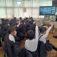 2月末に、4年生と5年生が、大阪市立高倉小学校の子どもたちとオンライン交流を行いました。