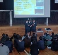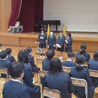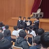 児童会が主催して人権集会を行いました。人権集会に向け、さまざまな視点から「人権」について各教室で学習してきたことを、最初に発表しました。子どもたちは「これからも、おかしいことや気づいたことをみんなで話していきたい」「一人一人の大切さを考えて過ごしたい」「本当の気持ちを考え、差別をなくしたい」「まず自分を好きになることが大切」など、みんなで話し合ったり考えたりしたことをまとめて発表していました。6年生はスライドを使って下級生にもわかりやすいように話してくれました。