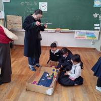 1年生が、どんぐりや落ち葉、松ぼっくりなどを使って楽しいゲームコーナーやお店などを考え、「あきまつり」を教室で開催しました。1年生の保護者の方をお招きして、一緒に楽しみました。子どもたちが作ったアクセサリーやゲームなどは、「秋のもの」を使ってさまざまな工夫が凝らされていました。みんなで楽しいひと時を過ごすことができました。