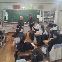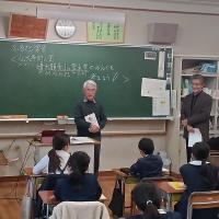 4年生が社会科の時間に、地域の宝の一つ遣水観音山と霊水堂について学習しました。霊水堂は30年前に整備され、その後も仏大寺町の皆さんにより大切に守られている場所です。今日は、講師として仏大寺町の表さんと畑中さんにお越しいただき、遣水観音山・霊水堂の歴史や、霊水堂の保全活動についてお話しいただきました。子どもたちにとっては、遠足や町探検で度々訪れている場所ではありますが、スライドを使って詳しく教えていただいたおかげで、今回新しく知ることもあり、みんな熱心にメモをとっていました。表さん、畑中さん、ありがとうございました。